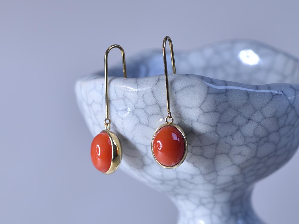 冬の装いに合う、赤サンゴとK18YGのピアス